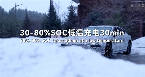 最要津的是无惧低温,实测-30摄氏度环境中,从30%充电至80%仅需30分钟,可用电量93%,10%SOC亏电景色下可保管120km/h高速行驶。